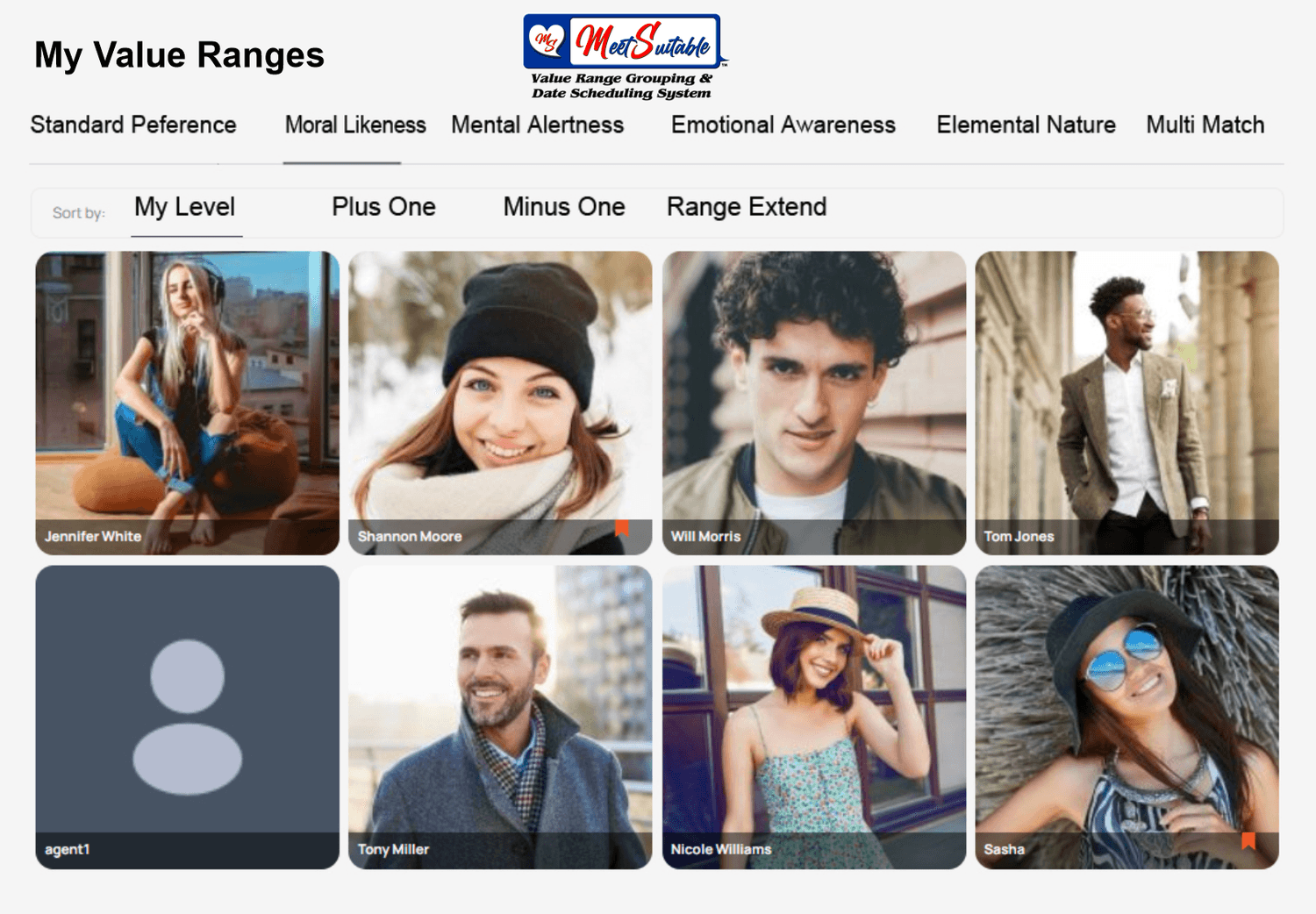 Imagine getting on the site and every profile you see is someone who shares a degree of energetic compatibility with you. That's exactly what you get with our innovative Value Range Grouping System. MeetSuitable utilizes a unique quizzing feature that filters and groups users profiles into 5 distinct compatibility ranges. Discover Moral Likeness, Mental Alertness, Emotional Awareness, Elemental Nature, and Multi-Match range groups.